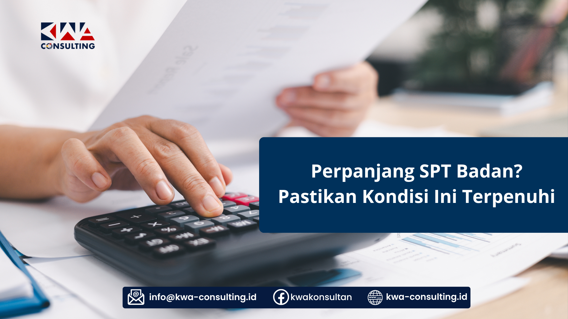 Peraturan Dirjen Pajak Nomor PER-3/PJ/2026 menegaskan bahwa tidak semua wajib pajak badan bisa memperpanjang waktu pelaporan SPT Tahunan. Perpanjangan maksimal 2 bulan hanya diberikan bagi yang memang belum menyelesaikan laporan keuangan atau masih dalam proses audit. Selain itu, pengajuan perpanjangan juga harus disertai dokumen pendukung yang lengkap dan disampaikan sebelum batas waktu pelaporan. Biar tidak salah langkah dan tetap patuh aturan terbaru, serahkan urusan pajak Anda ke ahlinya. Konsultasikan kebutuhan pajak bisnis Anda bersama KWA Consulting lebih aman, rapi, dan tanpa ribet.